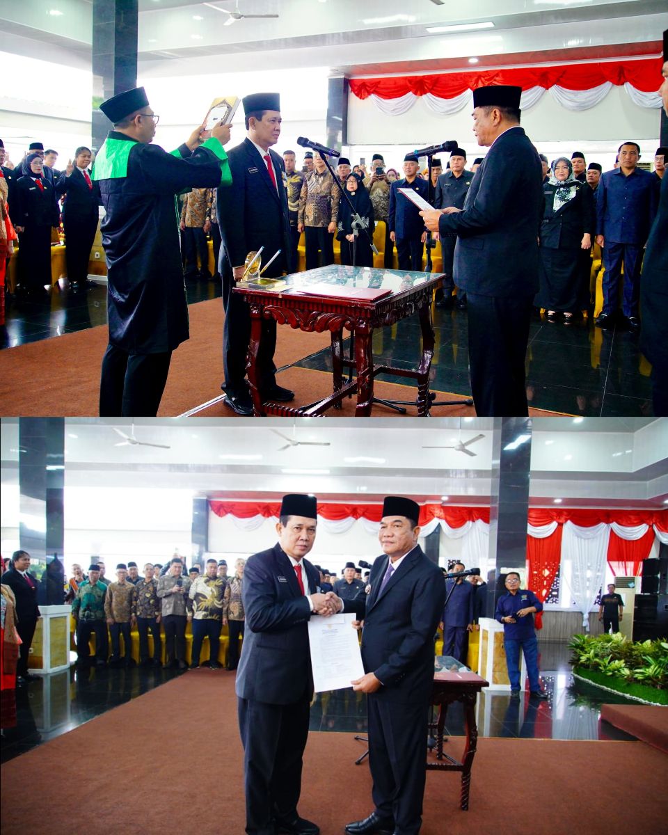 Pelantikan dan pengambilan sumpah Pejabat ini dilakukan di Pendopoan Griya Bumi Serasan Sekate, Kamis (12/3/2026).