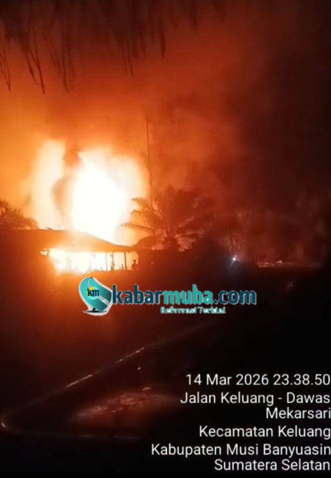 MUSI BANYUASIN, KM– Kebakaran kembali terjadi di lokasi masakan minyak ilegal di wilayah Dusun Dawas, Desa Mekar Sari, Kecamatan Keluang, Kabupaten Musi Banyuasin, Sumatera Selatan, pada Sabtu malam (14/3/2026) sekitar pukul 23.38 WIB.