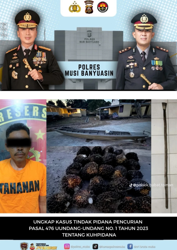Pelaku Pencurian Buah Sawit Diamankan, Polsek Babat Toman Tindak Lanjuti Proses Hukum